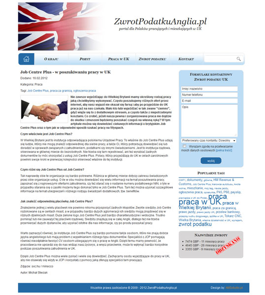 Strona on-line: ZwrotPodatkuAnglia.pl